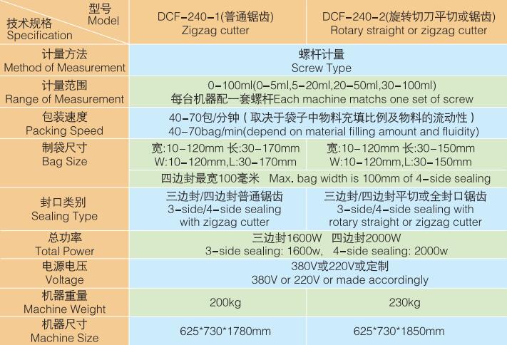 DCF-240-1/DCF240-2 平三邊封/四邊封粉末包裝機(jī)