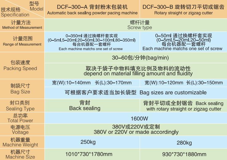DCF-300-A/ DCF-300-B 背封粉末包裝機